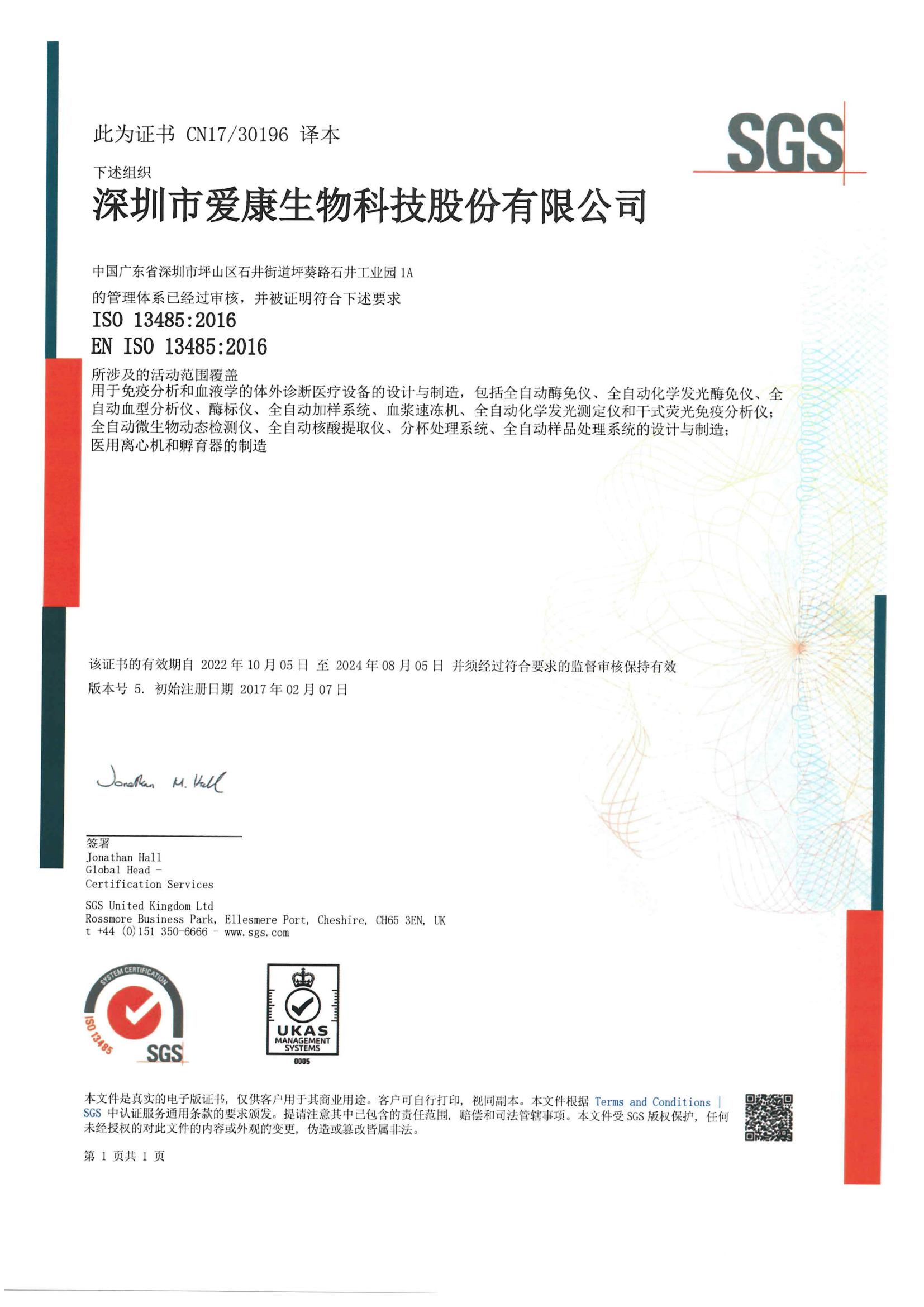 深圳市愛康生物科技股份有限公司成立于2003年,是一家專業(yè)從事醫(yī)療設(shè)備及體外診斷試劑產(chǎn)品研發(fā),集生產(chǎn)、銷售和售后服務(wù)于一體的國家高新技術(shù)企業(yè)。愛康生物擁有酶免、血型、化學(xué)發(fā)光、POCT四大平臺產(chǎn)品,致力于為醫(yī)院、血站等臨床檢驗(yàn)機(jī)構(gòu)提供優(yōu)質(zhì)的產(chǎn)品及專業(yè)的服務(wù)。