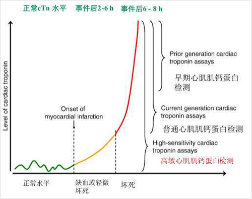 過去將近10多年的時(shí)間里,心肌肌鈣蛋白檢測的靈敏度一直被不斷提高,高敏肌鈣蛋白的概念應(yīng)運(yùn)而生。 高敏肌鈣蛋白作為一種高敏感的檢測指標(biāo),有助于探查既往易被漏診的微小心肌損傷,HS-cTn可在心肌損傷后1~3h就檢測到有臨床意義的增高,可比傳統(tǒng)方法提早3~6h,與普通cTn檢測相比,高敏肌鈣蛋白檢測對心肌梗死有較高的預(yù)測價(jià)值,可減少肌鈣蛋白盲區(qū)時(shí)間,更早地檢測急性心肌梗死。使用高敏肌鈣蛋白可以在癥狀出現(xiàn)的1-3小時(shí)內(nèi)診斷ACS,改善5%的非ST段抬高急性冠脈綜合征患者結(jié)局。同時(shí),HS-cTn更合理篩查心血管高?;颊?,優(yōu)化臨床治療決策與預(yù)后評估。