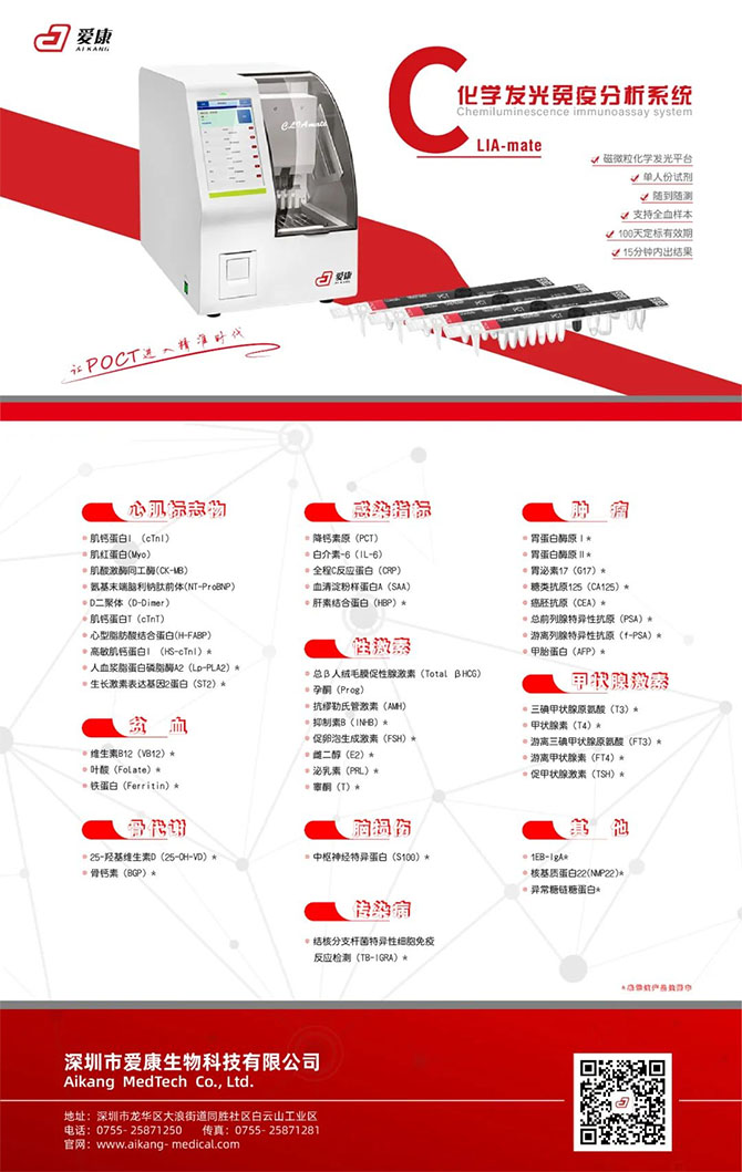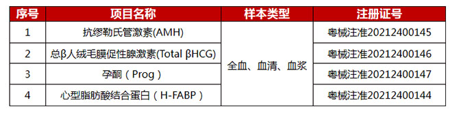 熱烈慶祝愛康試劑自主研發(fā)的單人份化學發(fā)光試劑產(chǎn)品系列,獲得抗繆勒氏管激素(AMH)、孕酮(Prog)、總β人絨毛膜促性腺激素(Total βHCG)和心型脂肪酸結(jié)合蛋白(H-FABP)4項醫(yī)療器械注冊證。這是愛康試劑新推出的性激素類和心肌類的重要檢測項目,有助于生殖系統(tǒng)功能和疾病、心梗的輔助診斷。