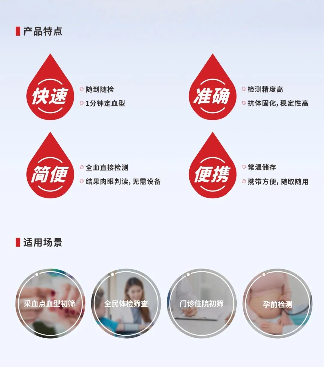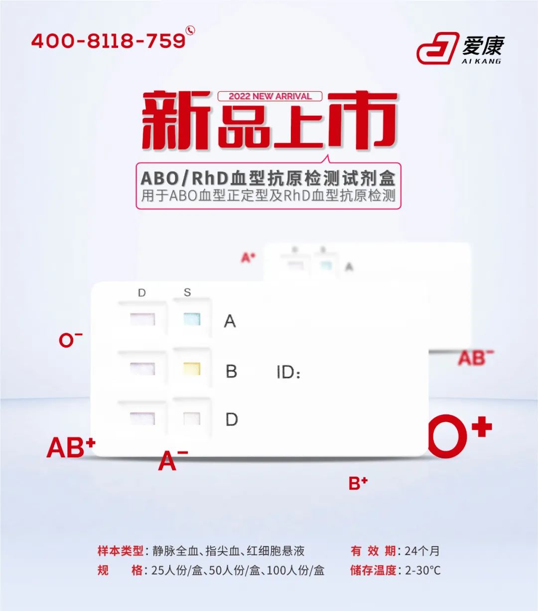 熱烈慶祝深圳愛康血型產(chǎn)品ABO/RhD血型抗原檢測試劑盒(固相法)上市!產(chǎn)品具有隨到隨檢、操作簡便、檢測快速(1分鐘出結(jié)果)等優(yōu)勢!