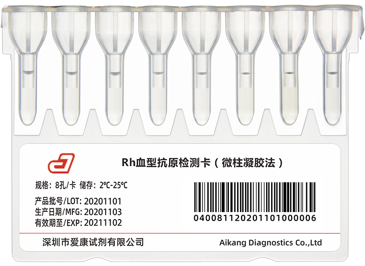 采用微柱凝膠法,8孔卡設(shè)計(jì),用于Rh血型系統(tǒng)的C、c、E、e抗原的檢測