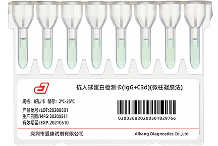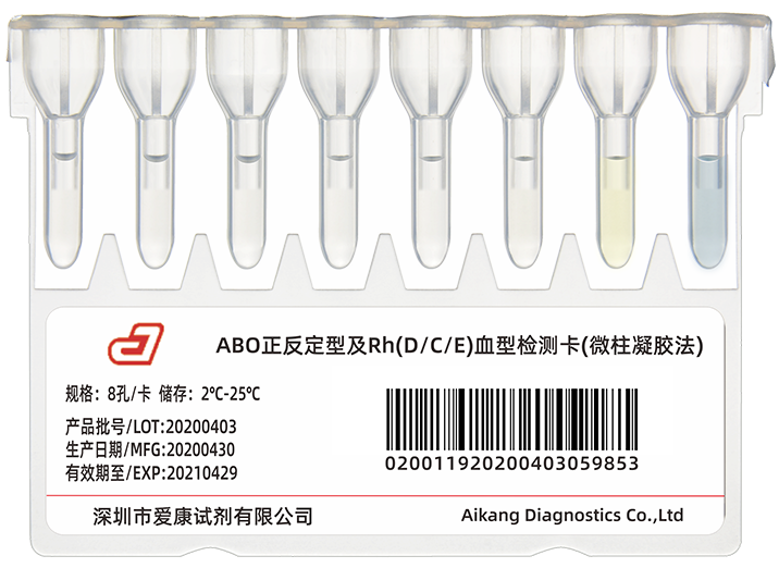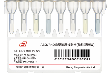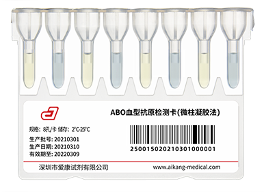 用于進(jìn)行ABO血型正定型檢測,可作為血型復(fù)查的常規(guī)檢測卡
